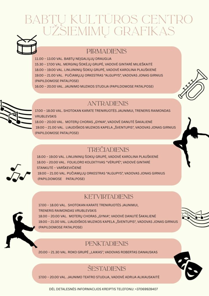 BABTŲ KULTŪROS CENTRO UŽSIEMIMŲ GRAFIKAS