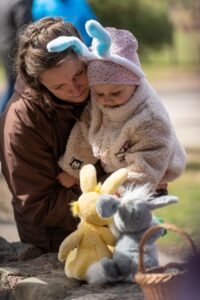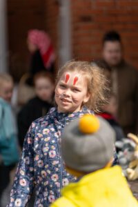 Renginio metu netrūko geros nuotaikos, vaikų juoko ir smagių veiklų. Šventės dalyviai rideno margučius, dalyvavo linksmuose žaidimuose, šoko, dainavo ir džiaugėsi saldžiomis dovanomis 🐰